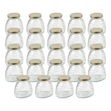 These elegant 9oz glass hex honey jars will add a touch of class to any event! Enhance the golden tones of your honey with the addition of a gold ...