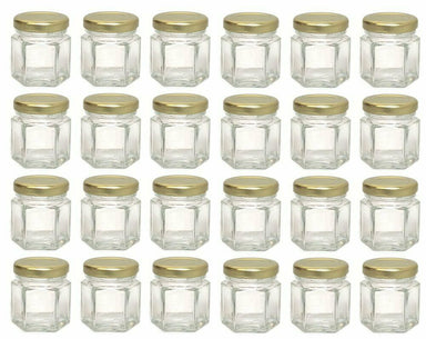 1.5 oz Clear Glass Hexagon Jars (Gold Lug Cap) Clear Glass Hexagon Jars are stylish containers, perfect for giving your jellies, jams, candies, mus...