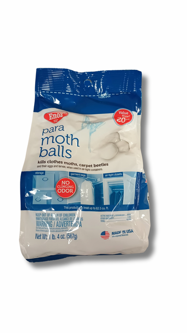 Enoz Para Moth Balls No clinging odor. Protects clothing. Kills clothes moths, carpet beetles, and their eggs and larvae, when used in air-tigh...
